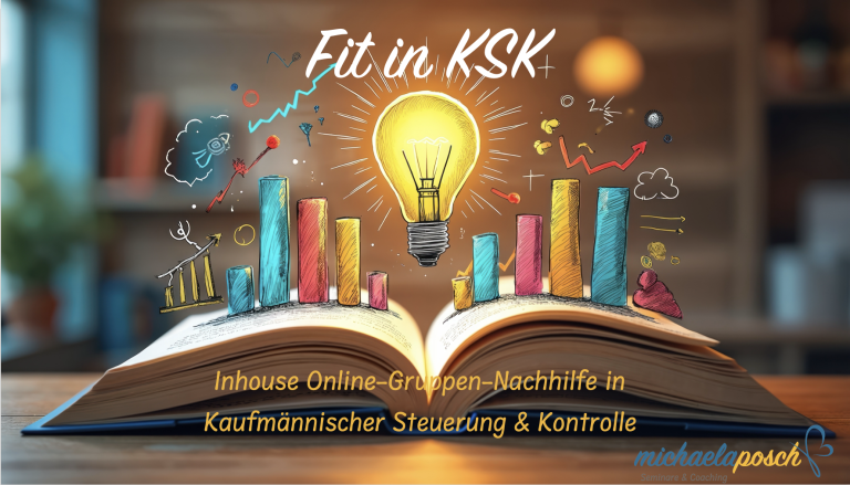 Meiner Erfahrung nach haben viele Auszubildende bereits vor der Prüfungsvorbereitung vor allem im Bereich Kaufmännische Steuerung und Kontrolle Probleme. Um diese Lücken nicht erst in der Prüfungsvorbereitung zu schließen, gibt es Fit in KSK - eine Inhouse Online-Gruppen-Nachhilfe in interner & externer Buchführung - analog zum Gelernten in der Berufsschule.