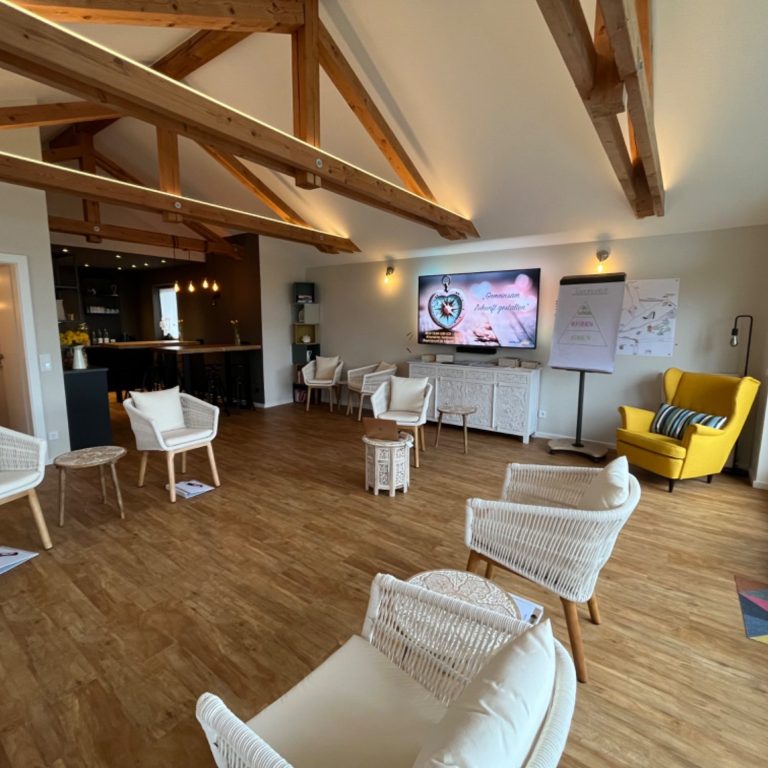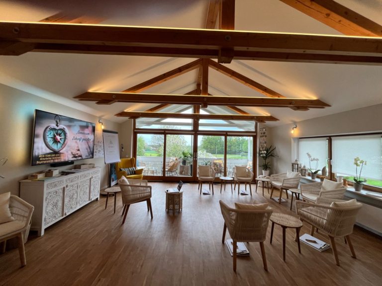 Manche Themen brauchen Abstand vom Arbeitsalltag. Mein Seminarraum mit Waldblick bietet genau das: einen ruhigen, wertschätzenden Rahmen in wohnlicher Atmosphäre. Ein Ort, an dem Menschen ankommen, sich öffnen und in den Austausch gehen können. Abseits vom Tagesgeschäft entsteht hier Raum für echte Reflexion, Verbindung und nachhaltige Entwicklung.